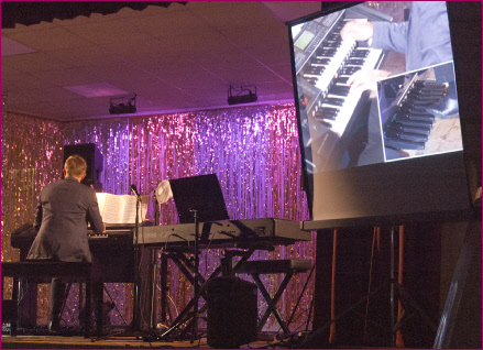 Unfortunately our October concert with Mark Thompson coincided with the arrival of the first named storm of the winter and the weather was atrocious, which consequently reflected on our audience numbers. However, 45 brave souls ventured out and their enthusiasm was rewarded by a superb evening of music provided by Mark, which opened appropriately enough with a medley containing "Always Look on the Bright Side of Life"! Mark brought along his Electronic Piano, as well as his trusted Yamaha EL900 and played a number of pure piano pieces during the evening. Also during his first half Mark played a medley of 1974 tunes which included "The Locomotion", "The Entertainer" and "Waterloo". This medley was performed on both the organ and the piano and saw Mark leaping between the instruments for the different tunes! The second half of the concert opened with "Alexander's Ragtime Band" and "Put another Nickel In". These were followed by the Anthony Hopkins waltz "And the Waltz Goes On" which Mark played beautifully in the style of the Andre Rieu performance. There followed a variety of music including "La Vie En Rose" and Leroy Anderson's "Fiddle Faddle". Back to the piano Mark played the Shostakovich "2nd Waltz" and a little jazz with "Mack the Knife". The concert concluded with "Twisting the Night Away", "Rock Around the Clock and "Blue Suede Shoes" and his encore was appropriately "We'll Meet Again". A great concert which was really enjoyed by our audience.