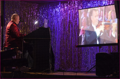 He opened with a superb medley of tunes associated with The Shadows. This was followed by “Sleepy Shores”, a medley of music from “Grease”, a medley of Roy Orbison music and a Beatles medley. He then played some music associated with Andre Rieu which was the first of the medleys to be accompanied by a video presentation.